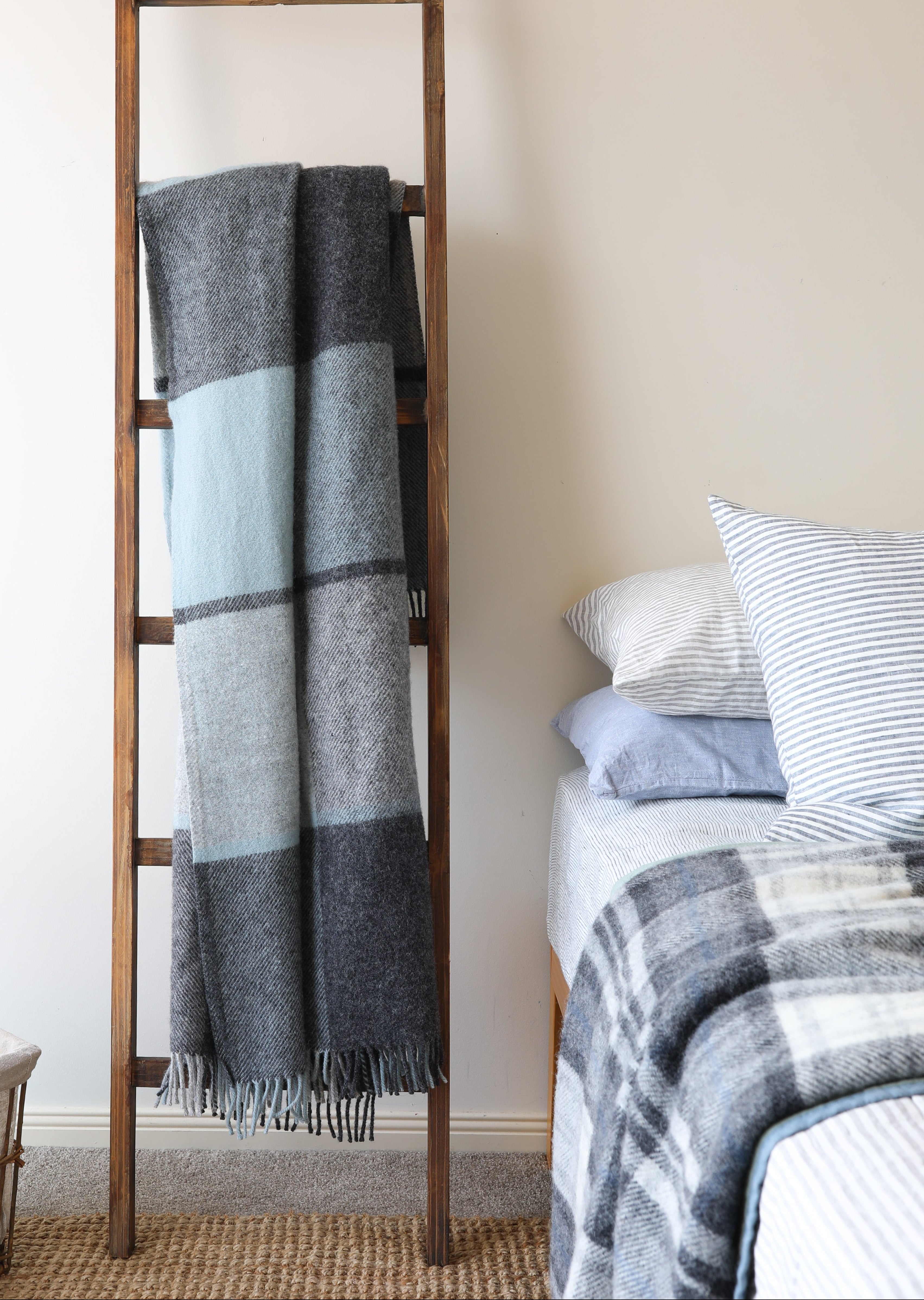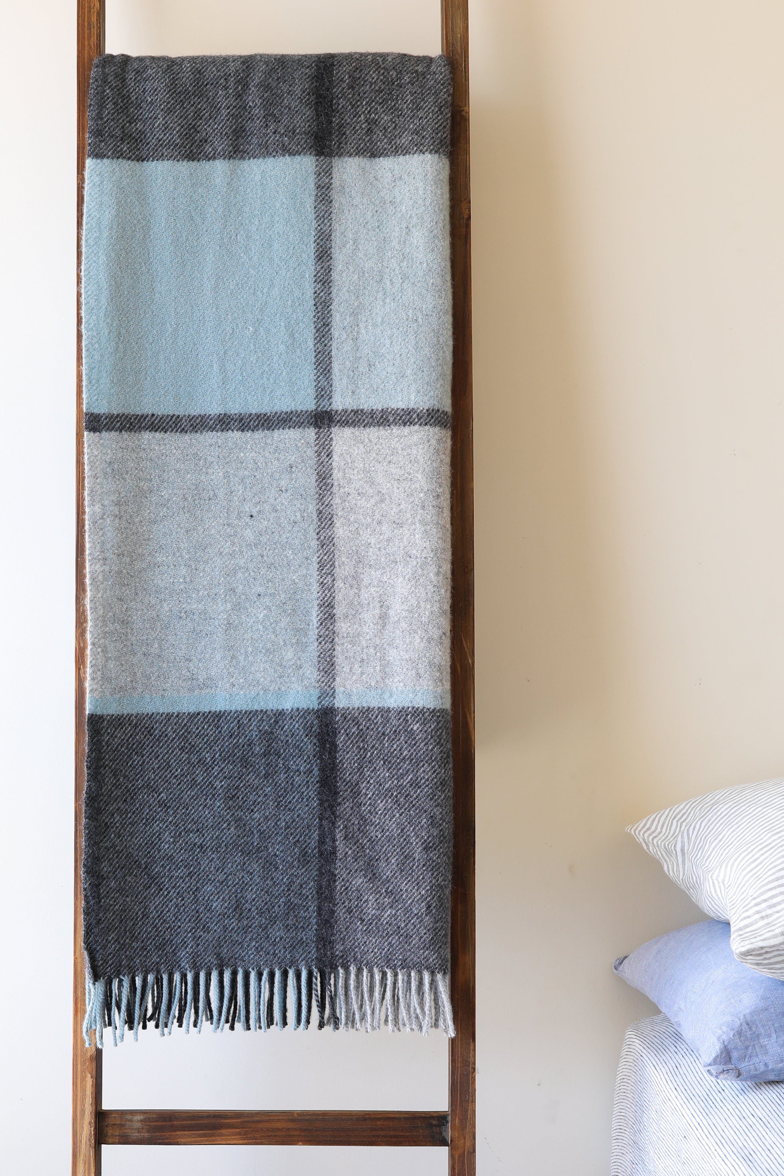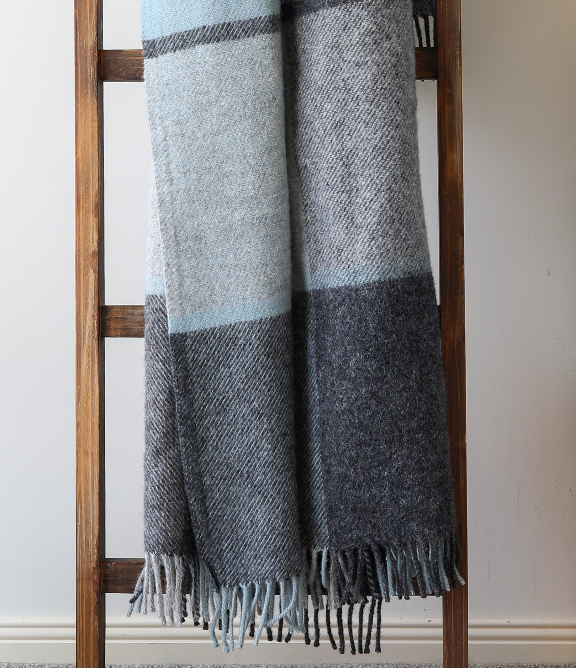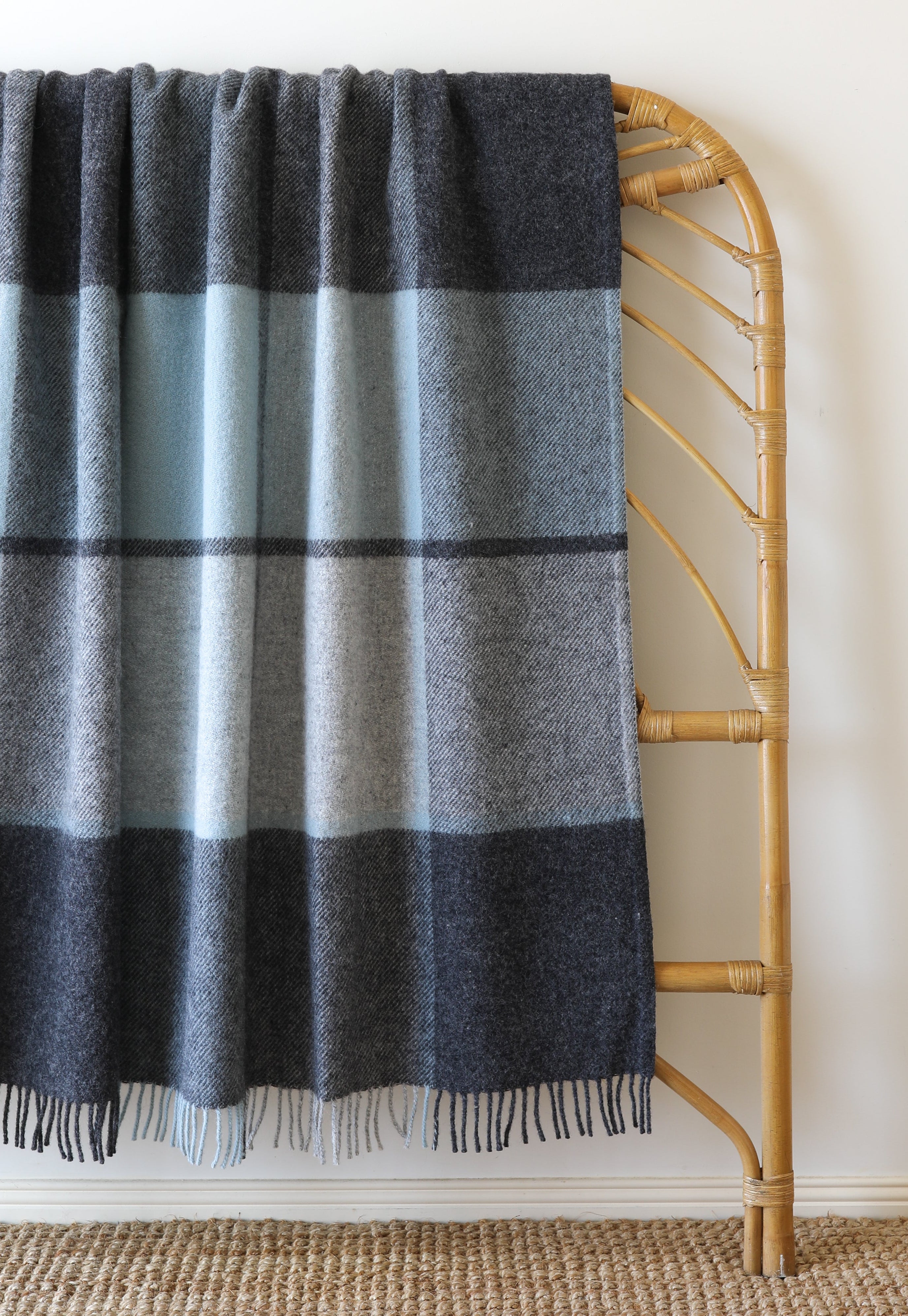 Our Duck Egg Check Throw is crafted from 100% Pure New Wool, meaning the fibres are new, untouched and naturally strong. This gives each blanket its warmth, longevity and that gorgeous, authentic wool feel.