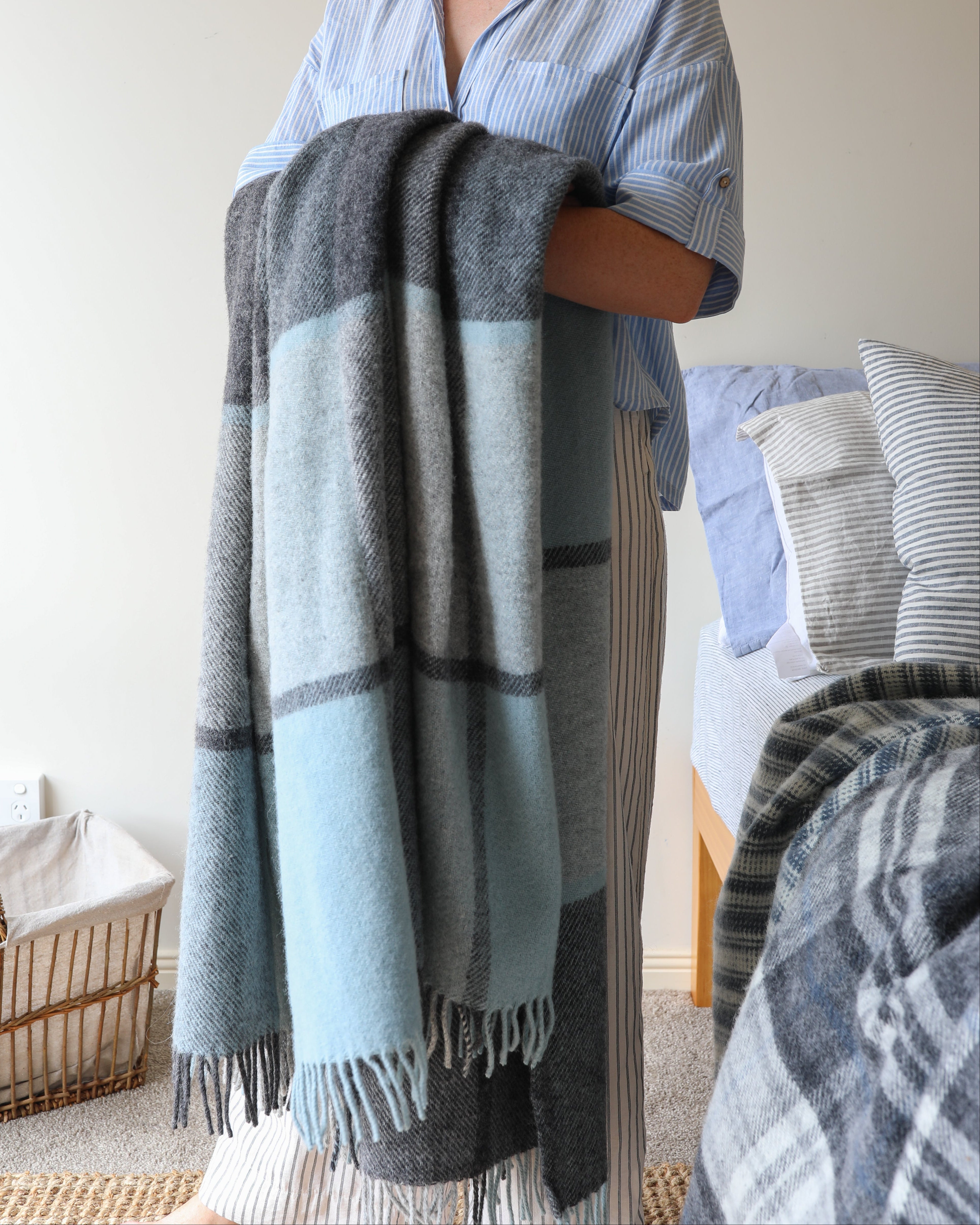 Woven in the UK by Tweedmill Textiles, a family run mill inspired by generations of tradition. With my own family connection to the UK and a deep love of natural fibres introducing these blankets feels like a meaningful extension of Sunday Linen. Woolen throws pair beautifully with our linen quilts, adding warmth, texture and a touch of heritage to any space.