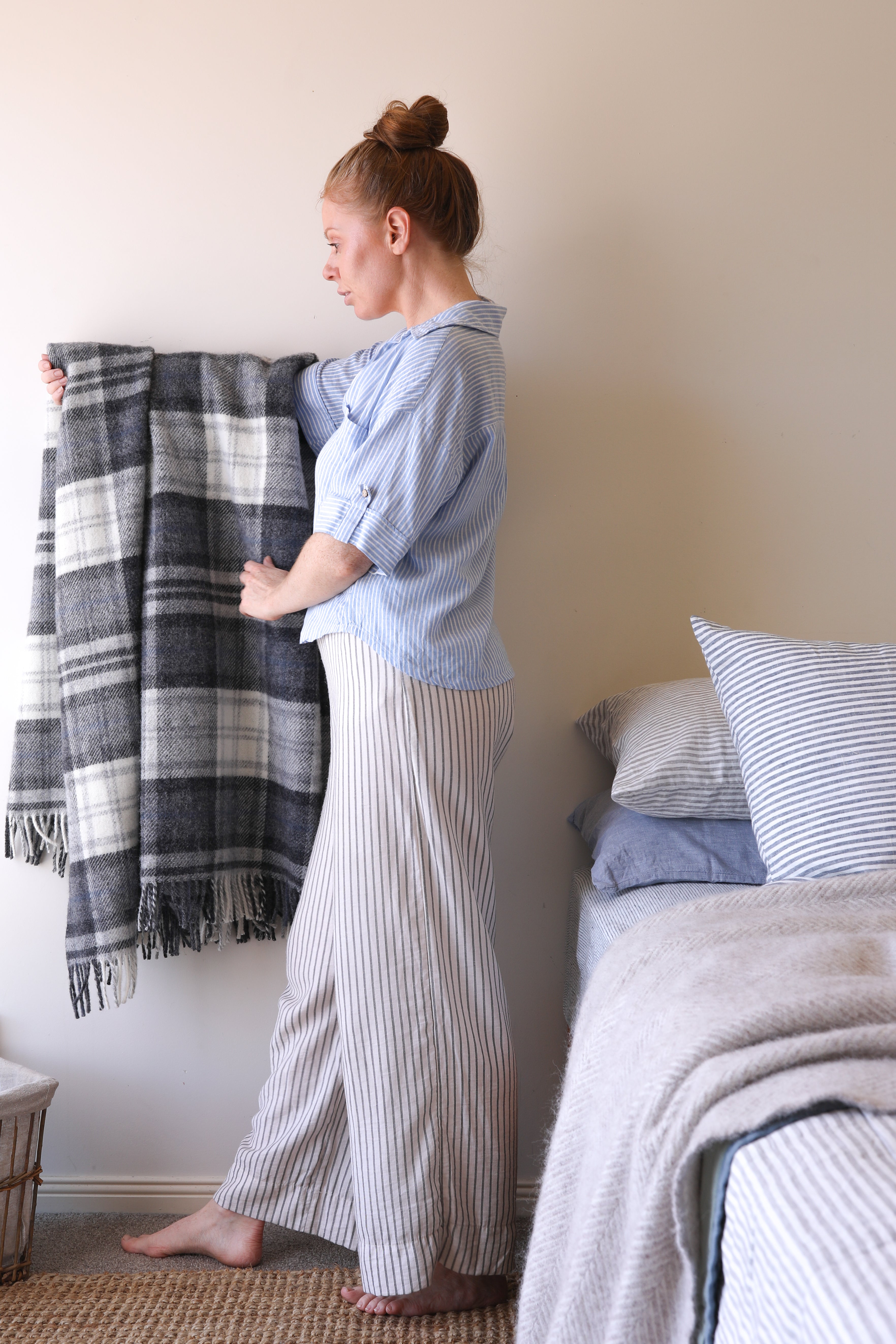Woven in the UK by Tweedmill Textiles, a family run mill inspired by generations of tradition. With my own family connection to the UK and a deep love of natural fibres introducing these blankets feels like a meaningful extension of Sunday Linen. Woolen throws pair beautifully with our linen quilts, adding warmth, texture and a touch of heritage to any space.